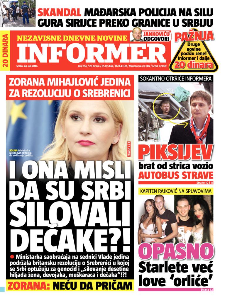 Дневна штампа за среду 24. јуни 2015. године