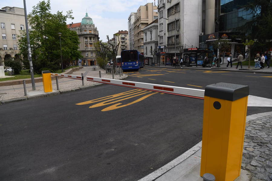 Уз Београдски сат у кружном току, ограде и бројне саксије на Тргу републике – новитет су и постављене рампе у центру престонице, а кроз које могу да прођу само возила градског превоза. Како за Н1 истиче Наташа Пантић из Збора Стари град, рампе представљају „још један у низу експеримената градских власти“.