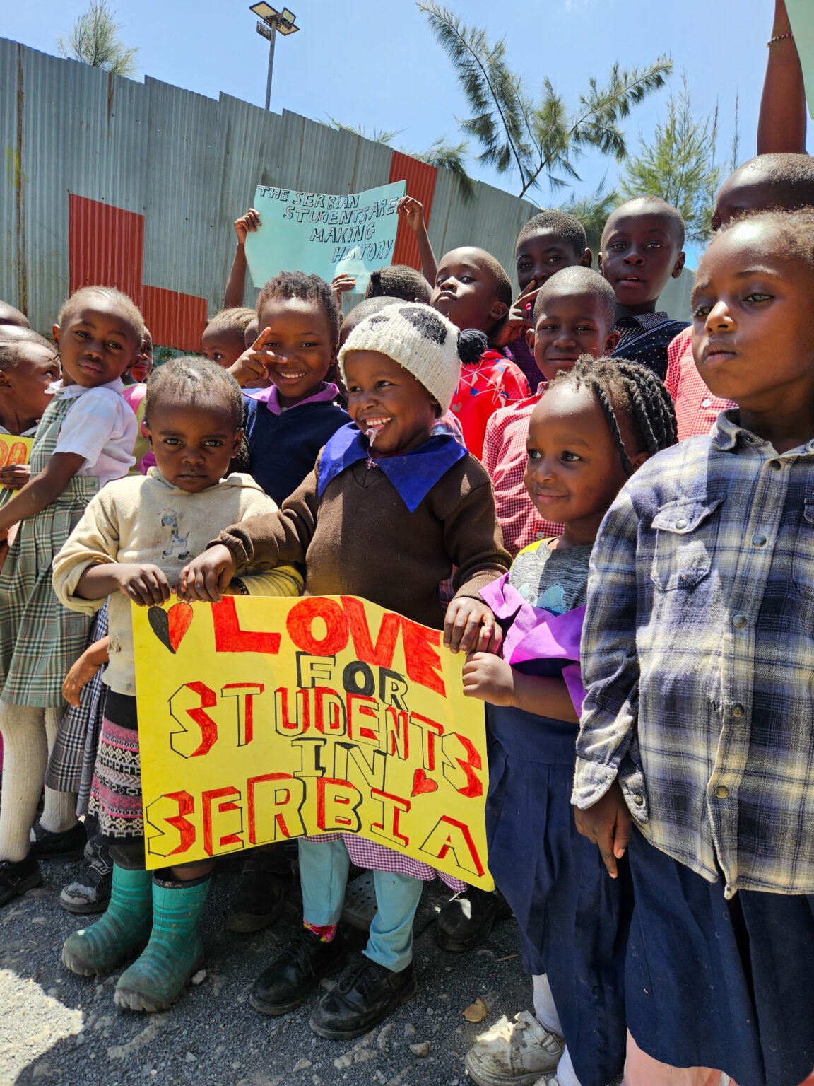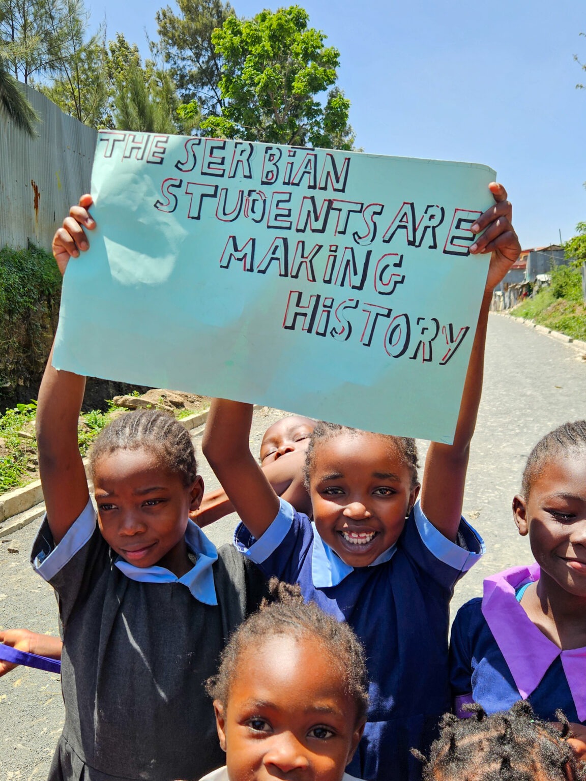 Читатељка портала Н1 Емилија Стојилковић послала нам је фотографије из Кеније на којима деца шаљу подршку студентима у Србији.