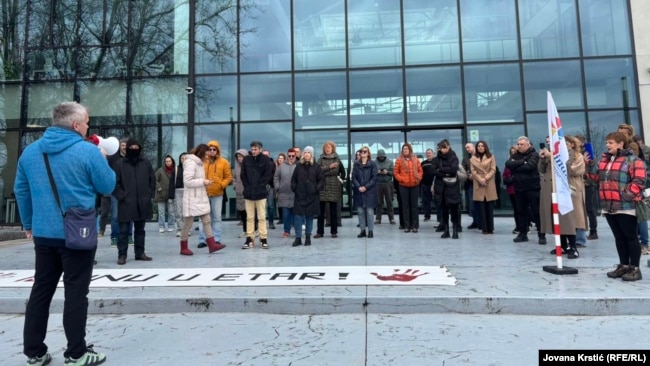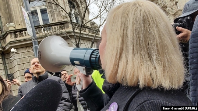 Новинарка Јована Глигоријевић рекла је да се протест одржава испред Председништва Србије јер председника државе Александра Вучића сматрају одговорним за насиље над новинарима.