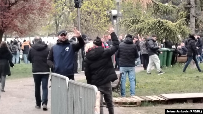 Један од присутних рекао је за РСЕ да су се „спонтано окупили“, како би реаговали и осудили протесте студената, професора и грађана испред Ректората београдског Универзитета 31. марта.