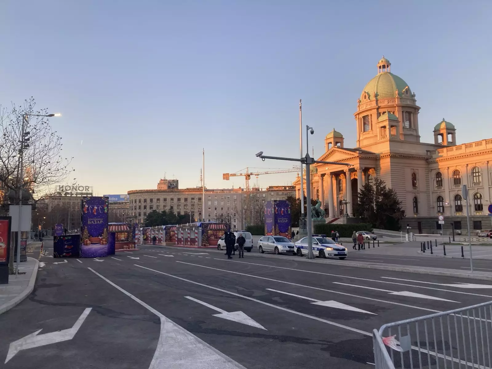 Плато код Народне скупштине Србије убрзано се припрема за празнични базар.