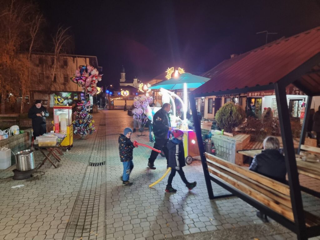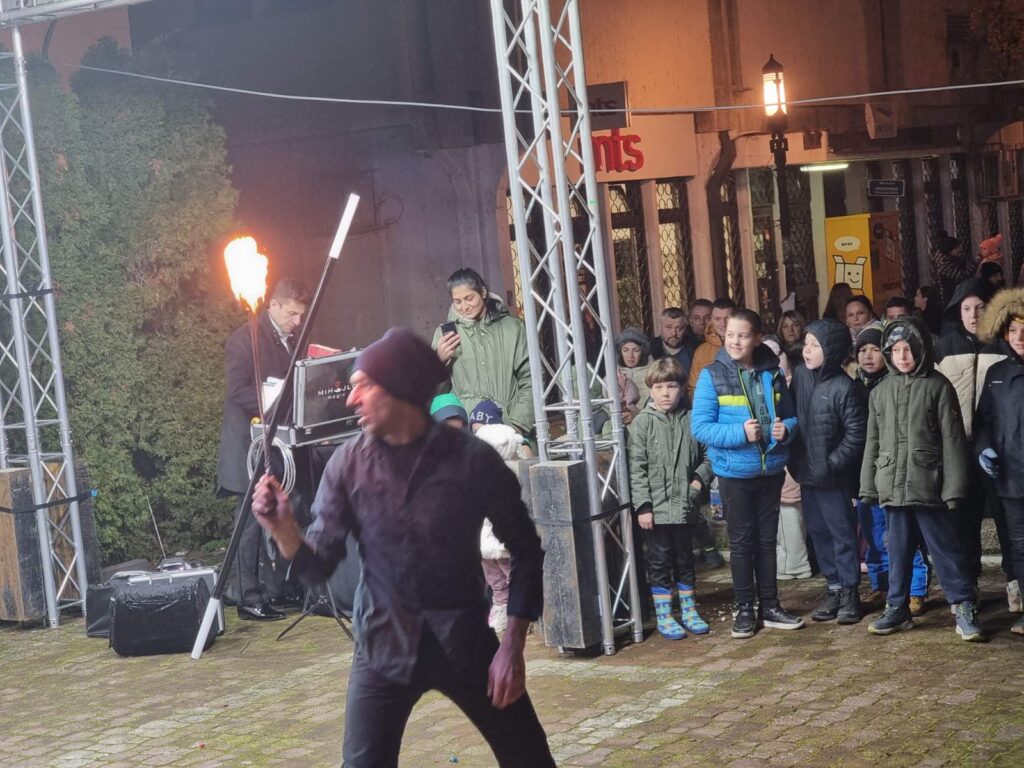 Већ од 18 часова, центар Гроцке био је испуњен дечијом грајом и осмесима. Најмлађе су забављали омиљени ликови – Стич, велики зец, кловнови и, наравно, незаобилазни Деда Мраз. Програм са бине пратио се са великим узбуђењем, док су околни кафићи били испуњени родитељима који су уживали у празничној атмосфери док су надгледали своју децу.