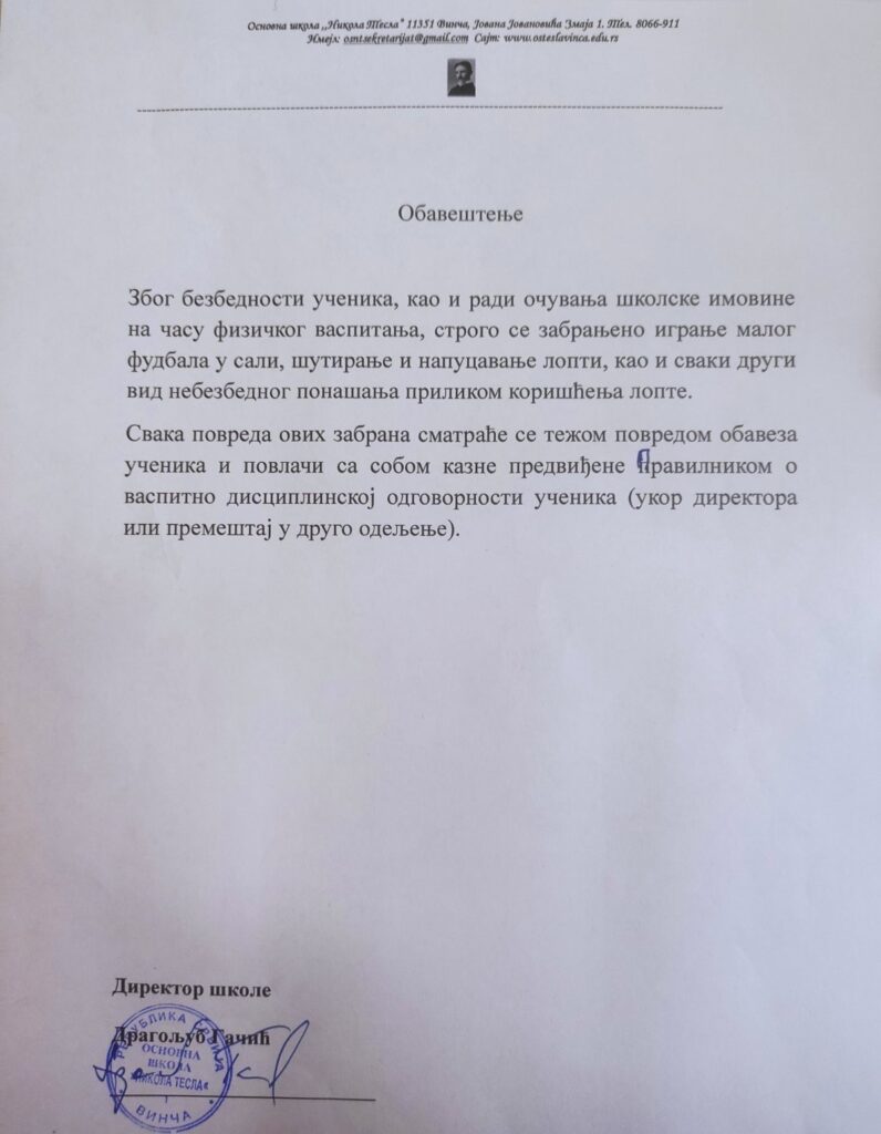 Проблем који је у јавност доспео након што је директор школе Драгољуб Гачић забранио играње фудбала у сали за физичко, отворио је, заправо, Пандорину кутију много већих, системских проблема.