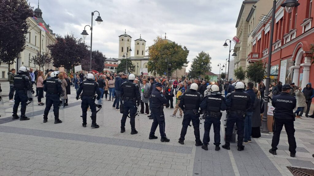 Присутан је велики број полиције у цивилу и униформама. Наводе да ће се бринути о безбедности грађана без обзира да ли су пријављени или непријављени скупови.